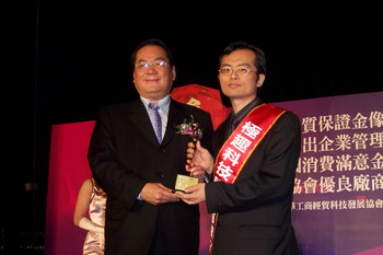 來喔~ 極趣科技張總.再度獲獎! 這次ㄋ~ 是台灣的國家品質保證金像獎。 在這次得獎廠商中., 科技獎得主比例不多, 而這未來的科技產業"機器人" 更是只有極趣科技獲獎。在此., 且讓我們再一同恭喜極趣賀喜極趣唄!! 行政院副院長特此頒獎。資正許水德先生。讚啦讚啦!!